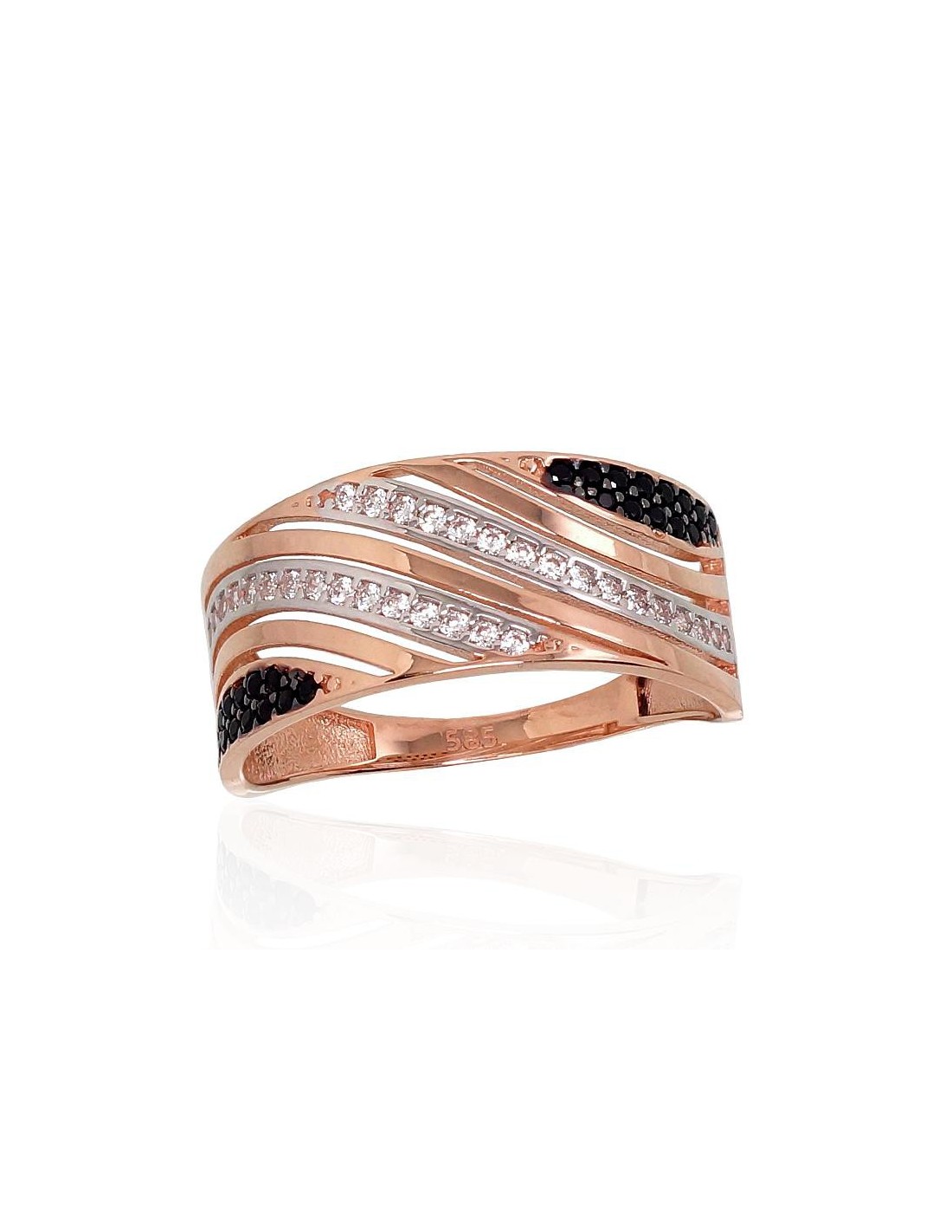 Auksinis žiedas #1100885(Au-R+PRh-W+PRh-Bk)_CZ+CZ-BK, Raudonas Auksas 585°, rodis (padengti) , Cirkonai . Akmuo: Cirkonai . Šis 585 prabos raudono aukso papuošalas su cirkoniais skirtas vertinantiems kokybę ir eleganciją. Jei ieškote auksiniai papuošalai, auksiniai papuošalai internetu, auksiniai žiedai, tai puikus pasirinkimas.